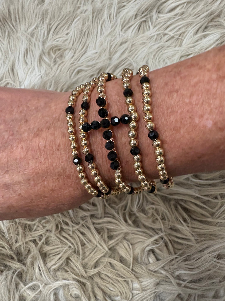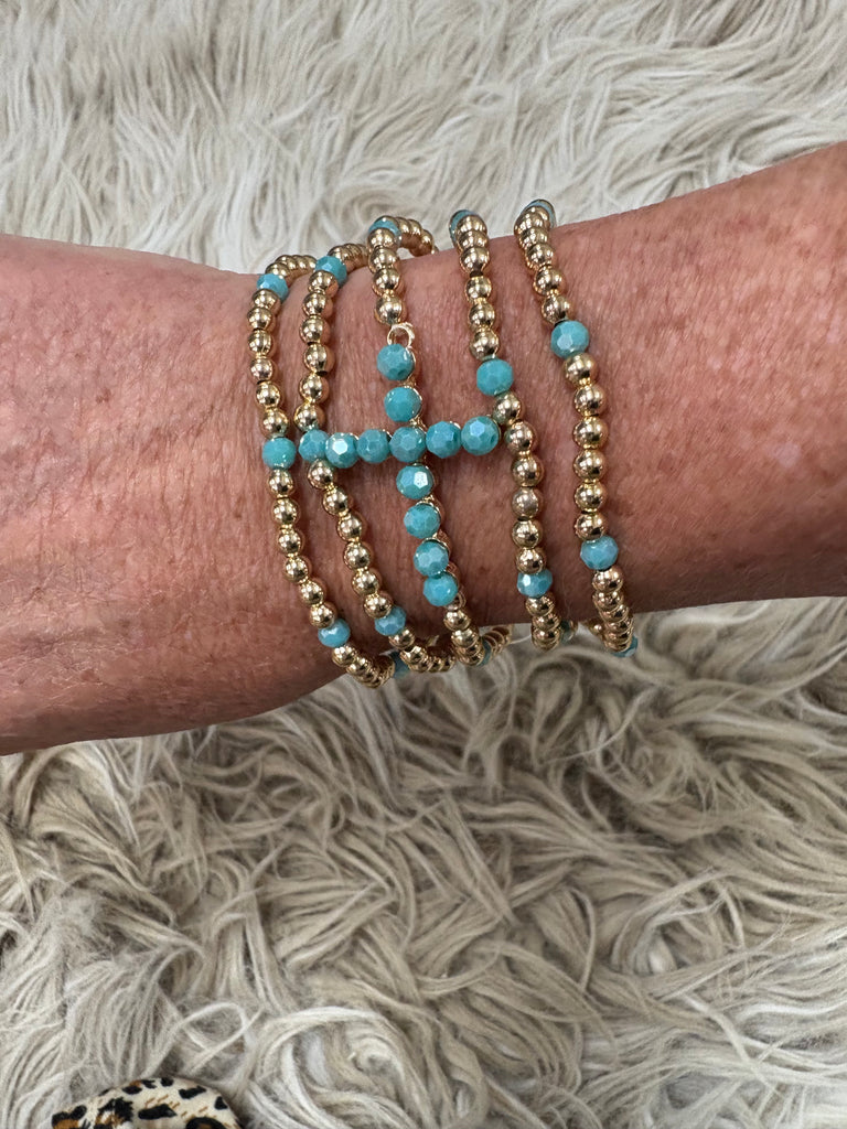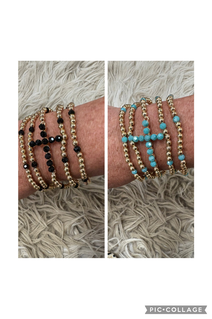 Gold Beaded Cross Stretch Bracelet